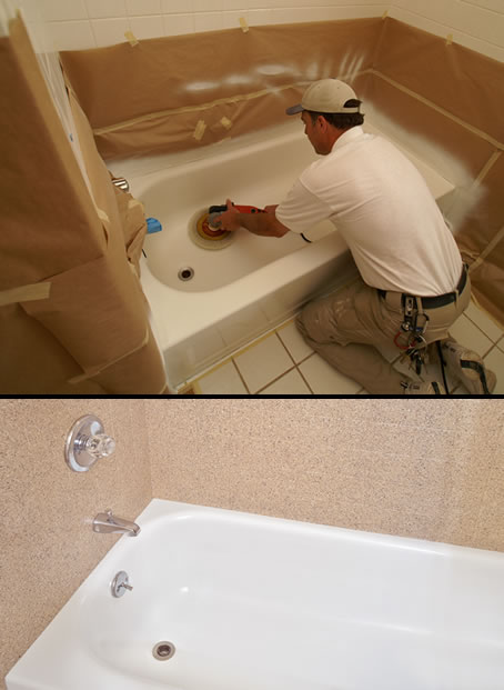 A good bathtub refinishing job requires extensive preparation, use of special cleaners, bonding primers, fillers for cracks and chips, and the skill and experience to spray on fast drying acrylic coatings.