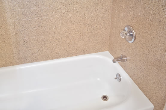 Miracle Method’s proprietary non-acid bathroom tub refinishing process allows for guaranteed restoration of porcelain, fiberglass, acrylic, and cultured marble bathtubs. First, the tub is thoroughly cleaned using specially formulated two-step cleaners to remove soap scum, mineral deposits, and body oils. Next, all cracks and chips are repaired. Miracle Method's proprietary bonding agent, MM-4, is applied to ensure a solid bond between the old surface and the new finish. Finally, a trained professional uses a fine-finish spray process to apply a hi-tech, durable acrylic coating. (This is not bathtub paint!) We also offer methods to refinish your plastic bathtub.