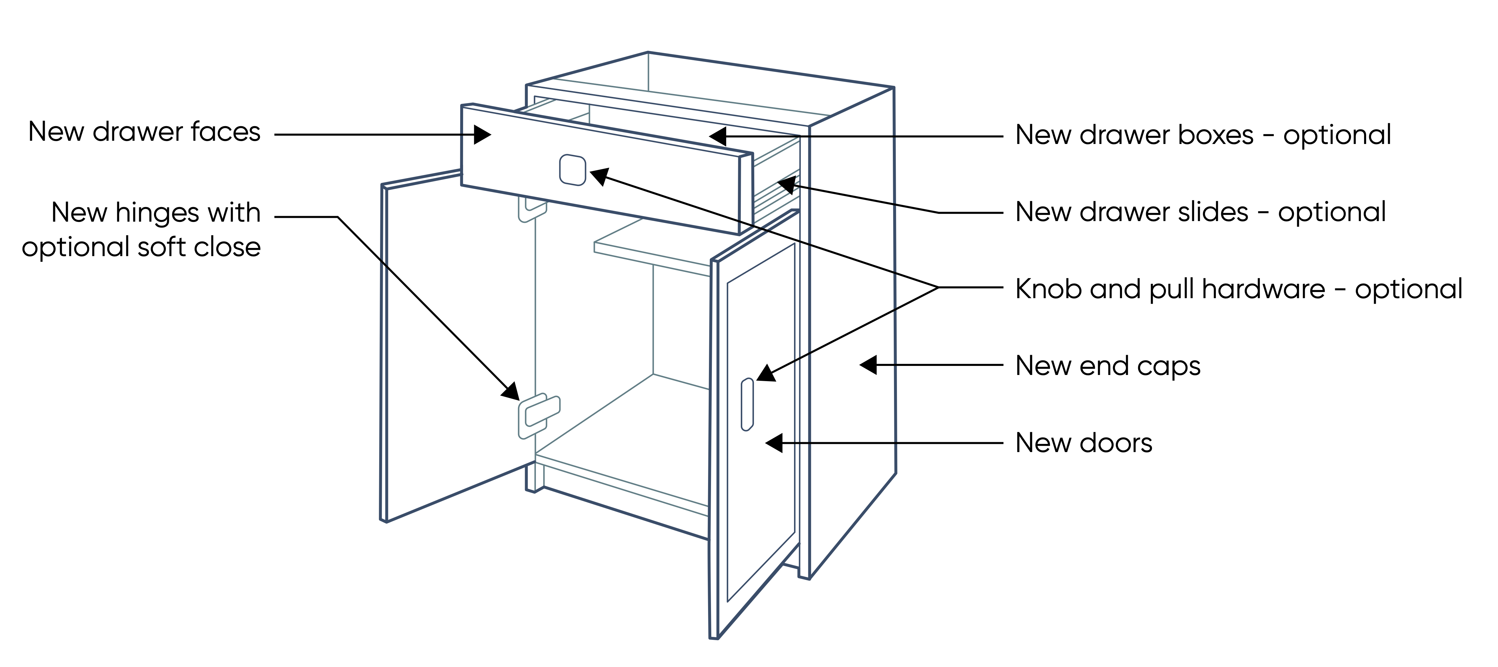 Unlike a full cabinet replacement, refacing keeps your existing cabinet structure intact while giving your doors, drawer fronts and hardware a fresh, stylish upgrade